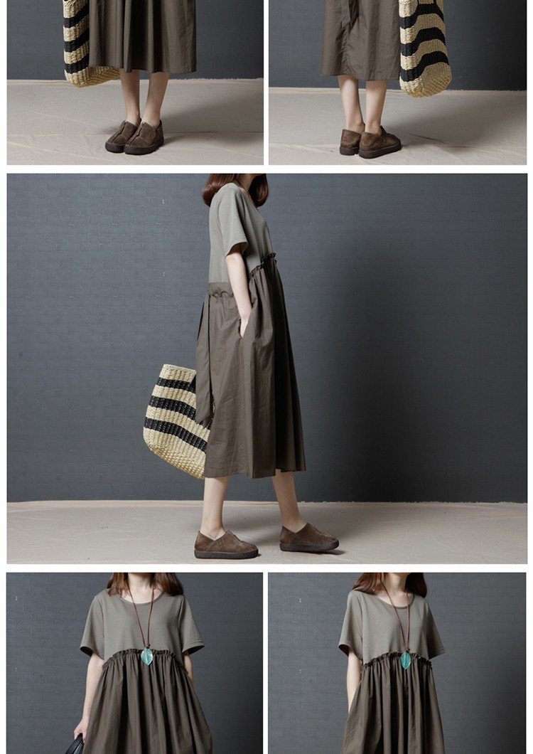 【リネン半袖ワンピース】シンプル 清涼感 オーガニックリネン