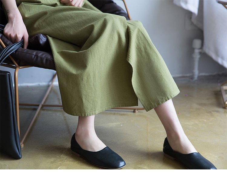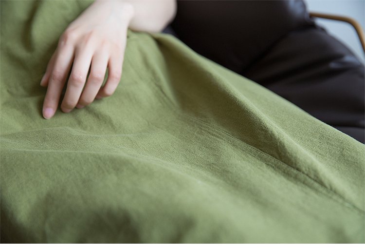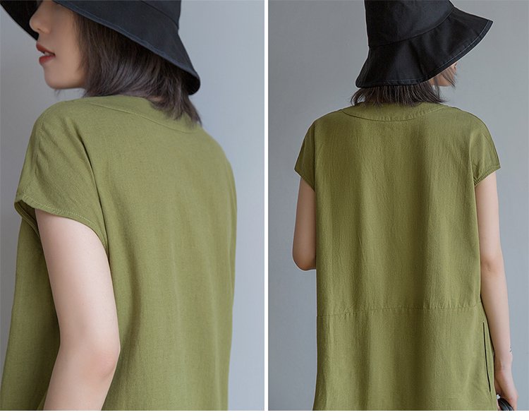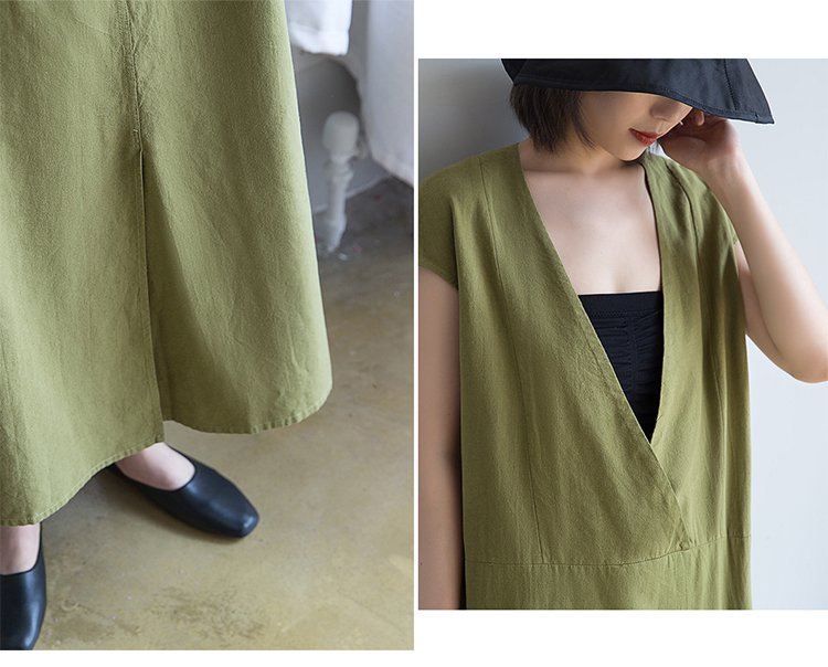 手作りVネック綿麻ワンピース レディース 体型カバー ゆったり